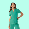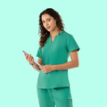 Sleek and sophisticated, Our Halo Slimfit top boasts a refined design with 2 discreet side pockets and a mandarin collar, perfect for achieving a polished professional appearance every day.